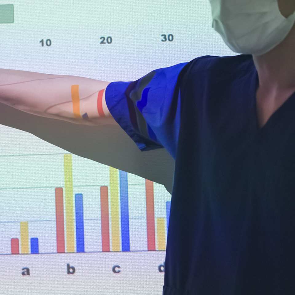 | ペットの体にセンサーを装着するだけで血糖値を継続的に測定できる装置。毎回針を刺すストレスがかからず、ペットへの負担も軽減できます。 |